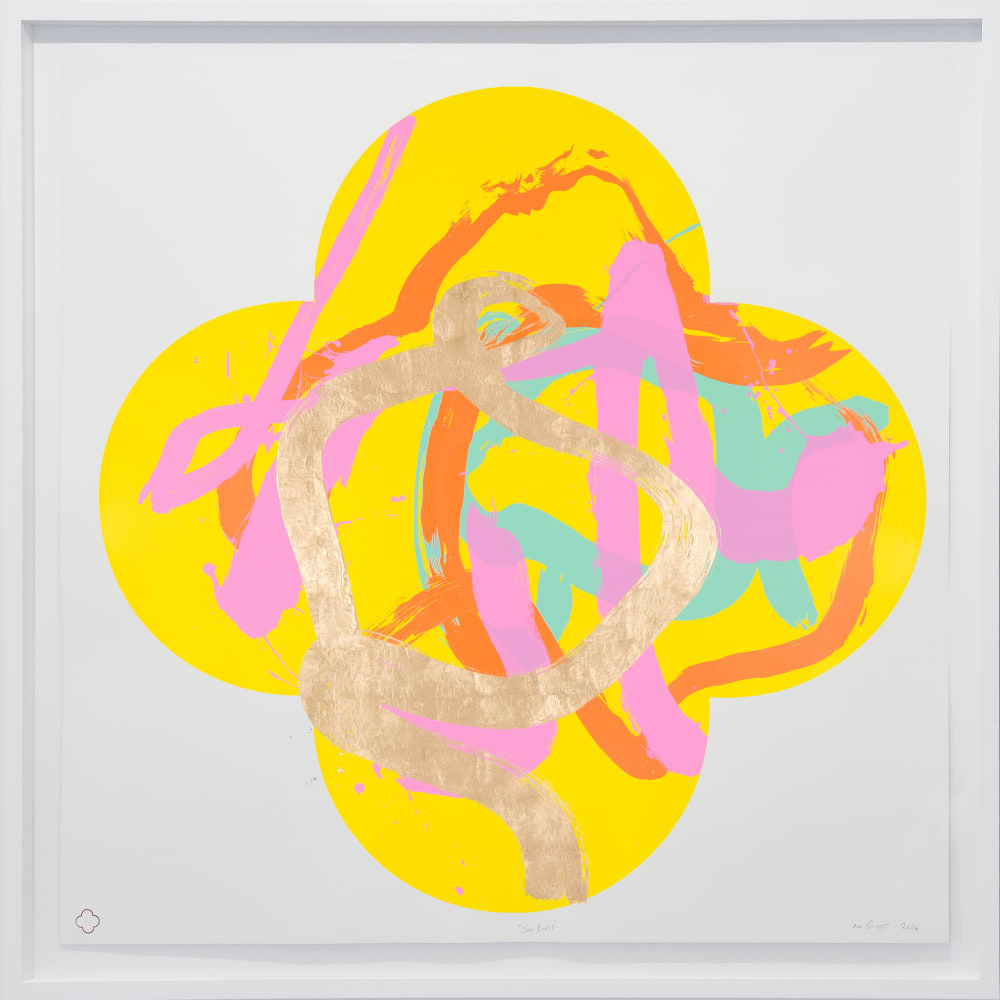 unique screenprint with red gold leaf on Fabriano Artistico 300 gsm cotton paper